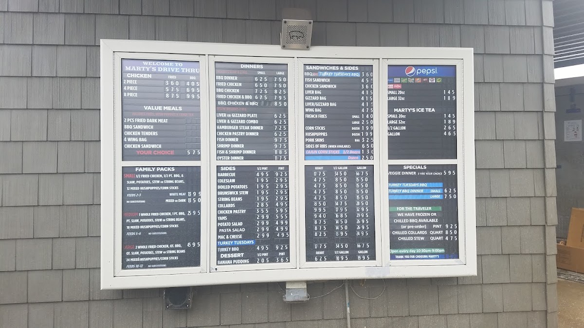 “ Fast even during rush hour ! Fair pricing and great flavor ! If you like your bbq with a little kick request the proper vinegar to go along with it you won’t regret it !!! Marty’s puts Mr Abram’s bbq to shame I highly recommend Marty’s moist bbq to anyone looking for top of the line pig in Wilson area Oh and the Brunswick stew is to die for ”